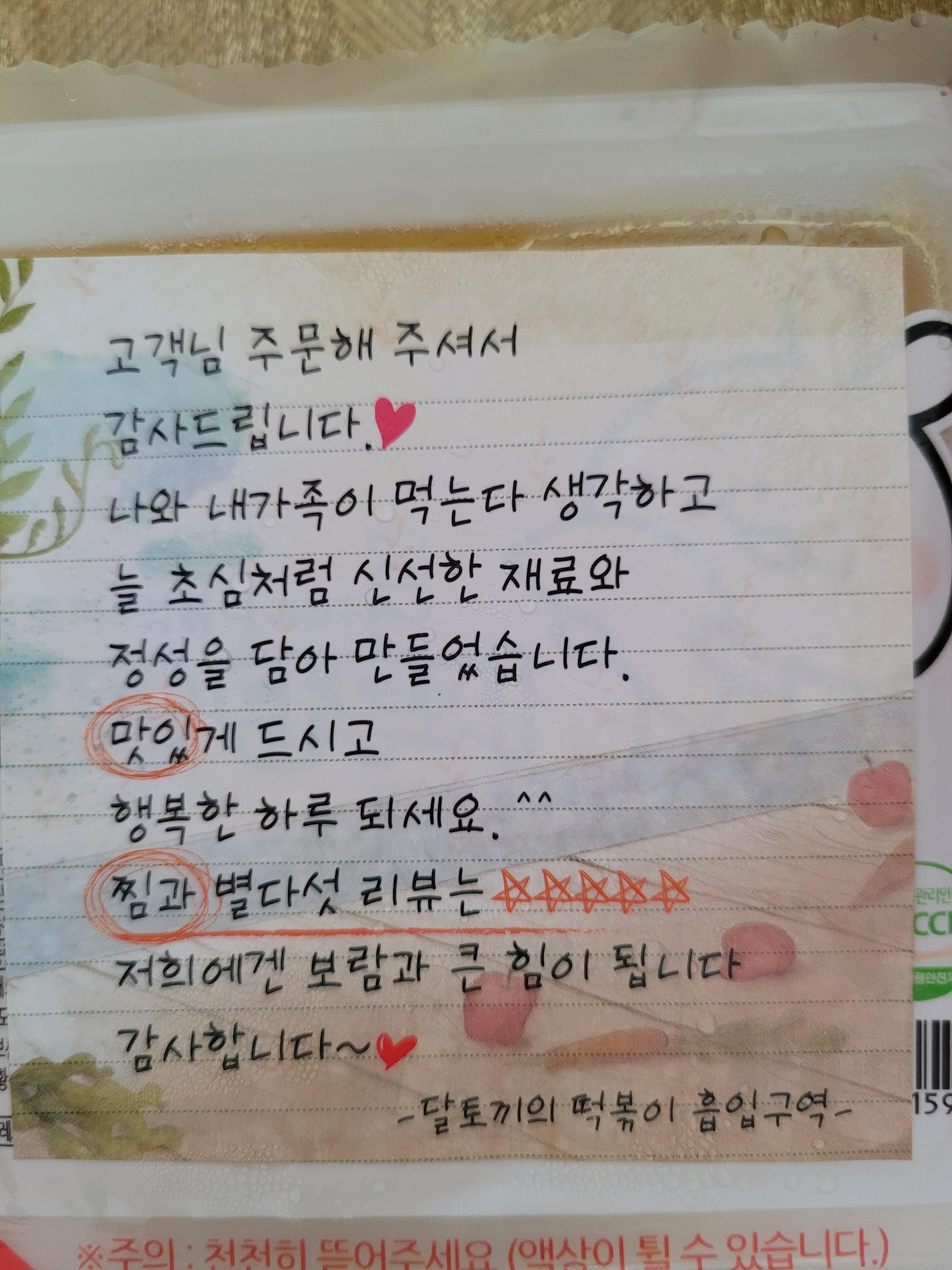 단무지 위에 사장님에 메모가 별거 아닌 것